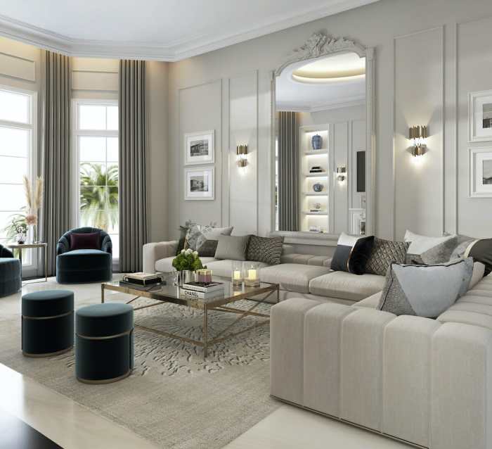- Modern: Sleek furniture, neutral colors, geometric shapes